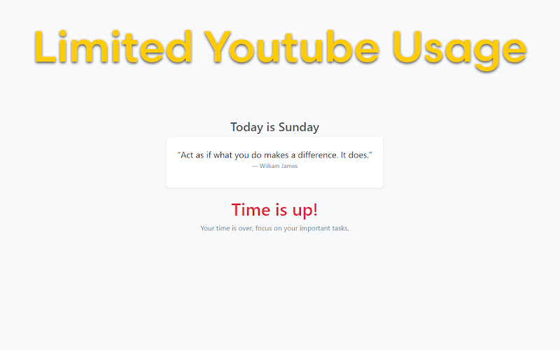 این افزونه امکان ردیابی دقیق زمان استفاده روزانه و هفتگی از YouTube را فراهم میکند و به کاربران اجازه میدهد محدودیت زمانی مشخصی (مانند ۳۰ دقیقه در روز) تعریف کنند. پس از رسیدن به سقف مصرف، دسترسی به YouTube مسدود شده و پیام یادآوری برای تمرکز روی فعالیتهای مهمتر نمایش داده میشود. همچنین قابلیتهایی مانند: